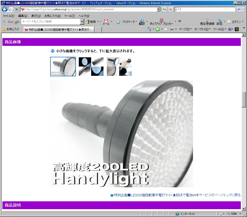今、Yahoo!オークションで、単三乾電池で、ちゃんと明るく光る懐中電灯が入札競争の真っただ中!