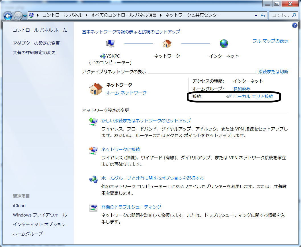 2:接続:にある『ローカルエリア接続』をクリックします。