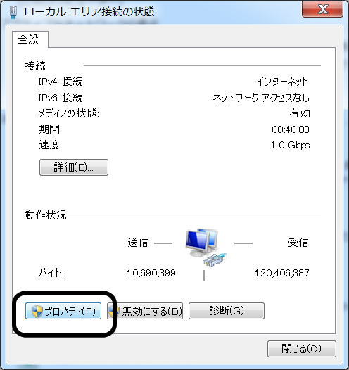 ここで、動作状況のバイトと呼ばれる項目に、数字が沢山ありますが、これが筆者より3ケタも4ケタも少ない場合、もしかすると今回のDNSサーバのエラー以外が原因の可能性もあります。